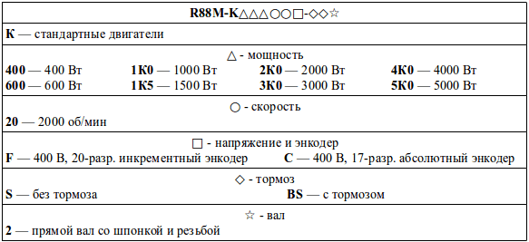Структура условного обозначения сервомоторов